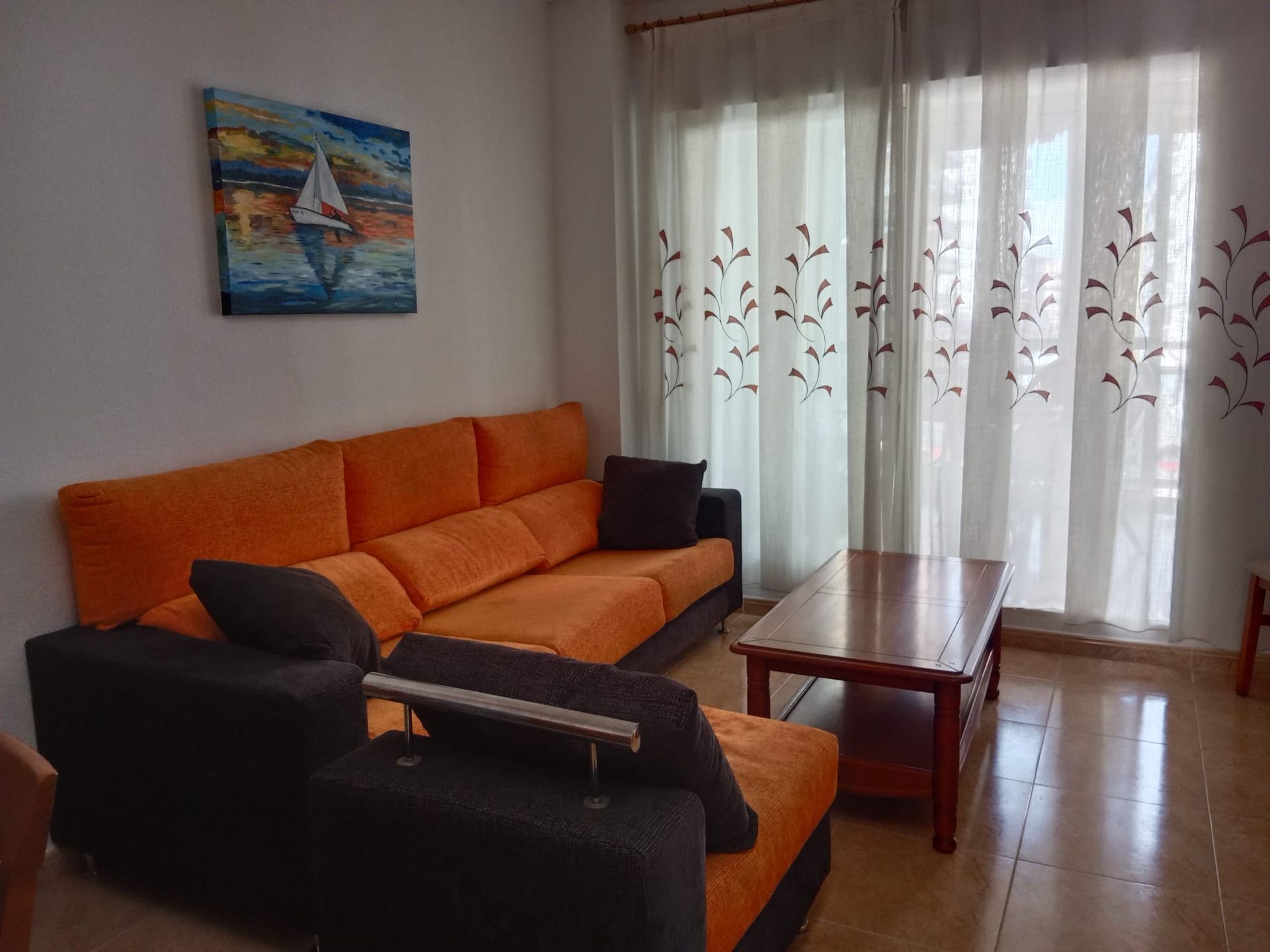 Dispone de: Salón Comedor de 20 Metros, Terraza de 7 Metros, Cocina, Lavadero, Ascensor, Piscina, Piscina Niños, Vistas a la Montaña, 1 Baño, Vitro cerámica, Amueblado, Orientación Sur, Z. Comunitaria, Z. Ajardinadas, TV Plana de 32 Pulgadas, HMDI - USB, 2 Camas de 90, 1 Camas de 135, Metros Cuadrados 65, a 50 metros del Mar.